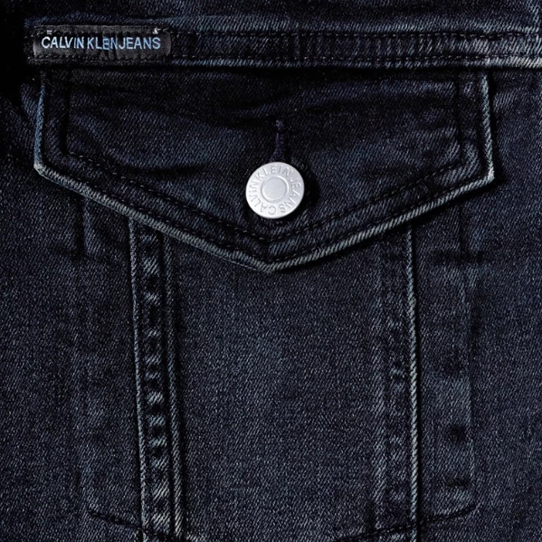 In a worn-in look – this Calvin Klein Jeans denim trucker jacket features dual patch chest pockets with button-through flaps and signature CK etched buttons.