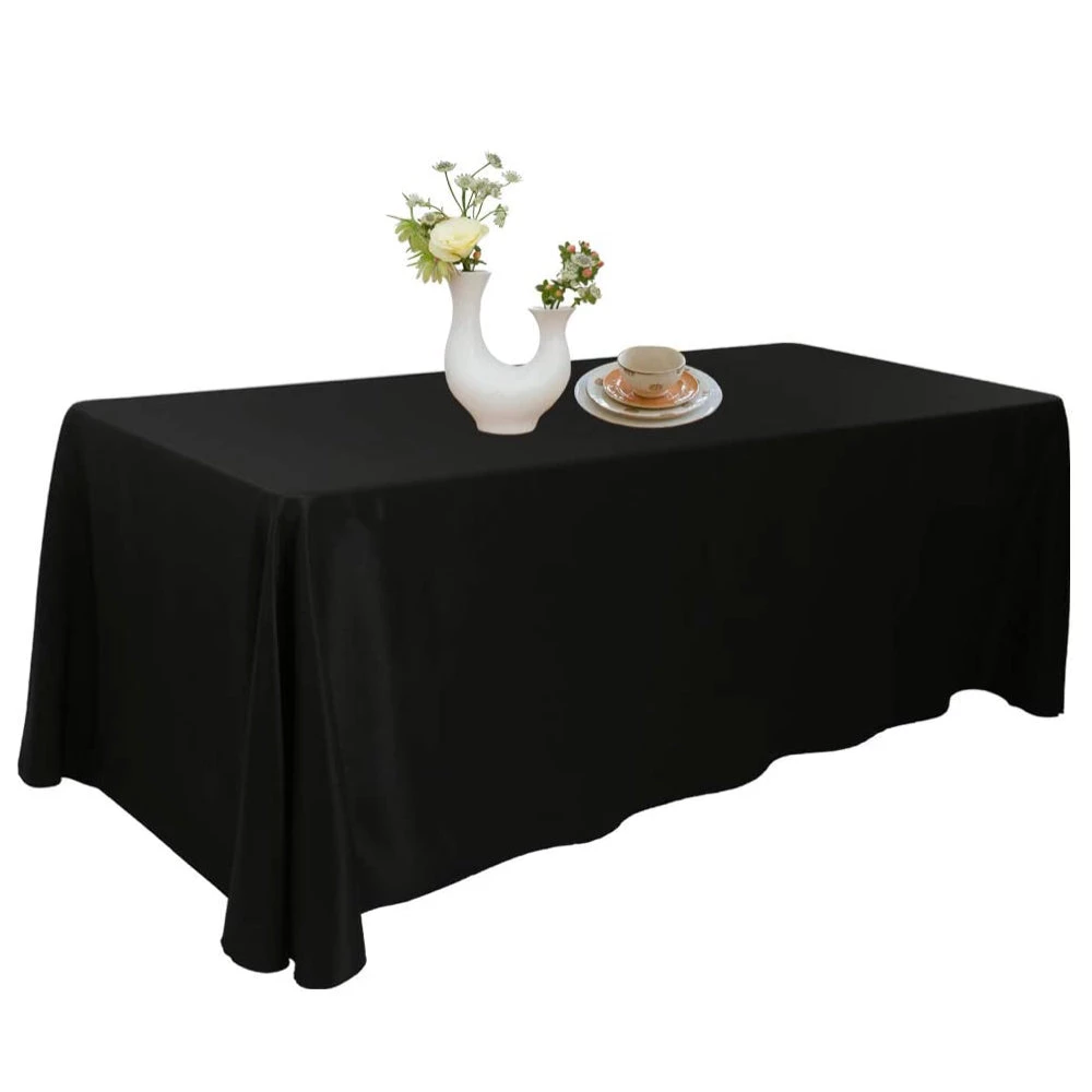 Urby 70 X 120 Inch Polyester Rectangular Table Cloth For 6 – 8 Foot Table That Seats 6 – 8 Person – Fits Folding Tables, Picnic Tables, Dining Tables – Machine Wash Reusable & Wrinkle Free – Black