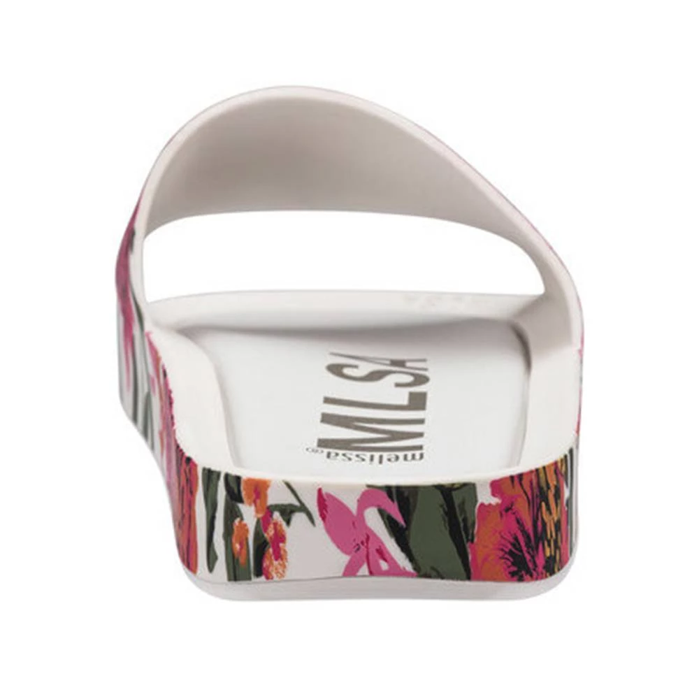 The new Melissa Beach Slide surprises with two modern vamp options: flocked or printed.